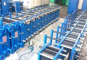 自行研制和開發的BR型板式換熱器產品已達10幾個系列,多種規格.單片面積從0.05 m2至1.8㎡。壓型模具比較齊全,板材有常用304/316L/鈦板/銅板,也有鎳板/哈氏合金/RS-2不銹鋼等特殊材料板片。